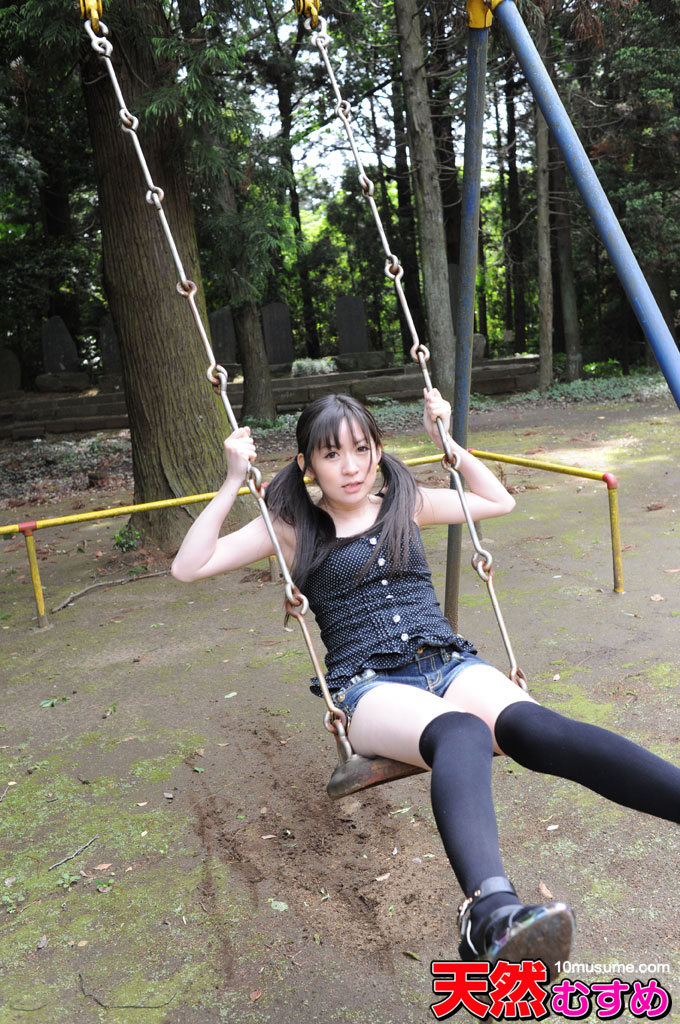 ツインテールに色白な美少女ですね。ブランコに乗ってる姿がかわいいですね。